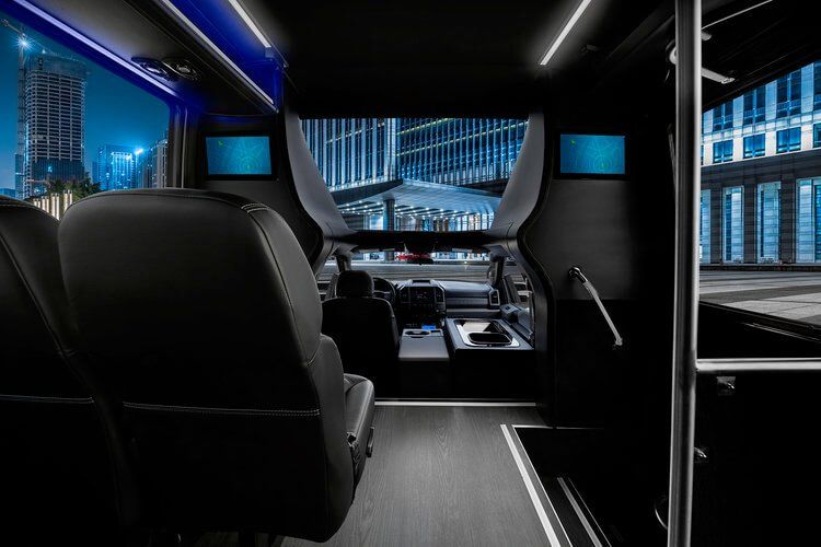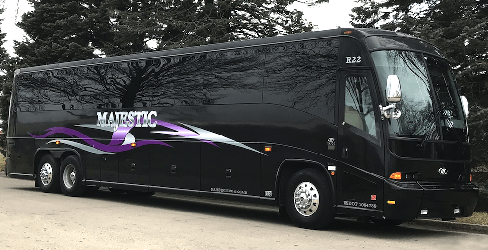 Limousine bus is perfect for executive transportation, wine tour, wedding, prom, quinceaňera, holiday lights tour, and other celebratory occasions. Includes rear luggage space.
